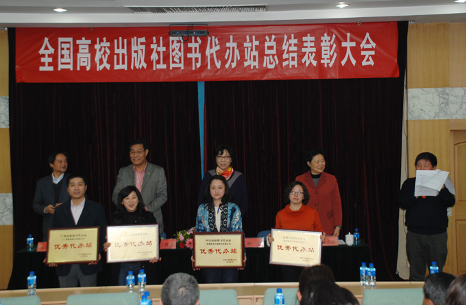 教育部社科司出版管理处林丽副处长带来了书面讲话,她代表教育部社会科学司对高校出版社图书代办站建立25周年表示热烈的祝贺,向获得表彰的代办站和人员表示衷心的祝贺。她指出,经过25年的调整、巩固、提高和改革发展,代办站日趋成熟。至今,全国代办站共有71家,遍布29个省、自治区、直辖市的47个城市,年发行码洋达到23亿元人民币。可以说,高校出版社图书代办站已发展成为大学出版体系的一个重要组成部分,成为公认的全国性的高校图书发行网络,成为高校教材发行领域中与新华书店、民营书店并立的三大发行渠道之一。她希望代办站服务中心和各高校出版社图书代办站认真贯彻落实党的十七届六中全会精神,不断开拓创新,将图书代办站整体建设成符合社会主义市场经济规律和高校教材供应特点,具有一定经济实力、市场竞争力和抗风险能力、具备现代管理手段、占有更大教材市场份额的高校教材发行的主要渠道。