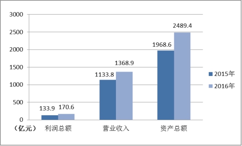 百亿级出版传媒集团集群基本形成,产业规模化集约化程度加深。全国120家图书出版、报刊出版、发行和印刷集团共实现主营业务收入3476.1亿元,较2015年增加474.3亿元,增长15.8%;拥有资产总额6541.5亿元,增加523.4亿元,增长8.7%;实现利润总额296.6亿元,增加49.4亿元,增长 20.0%。108家图书出版集团、报刊出版集团和发行集团主营业务收入占全国书报刊出版和出版物发行主营业务收入的74.5%,提高6.9个百分点;拥有资产总额占全国出版发行全行业资产总额的84.0%,提高2.7个百分点;实现利润总额占全国出版发行全行业利润总额的62.6%,提高7.9个百分点。共有16家集团资产总额超过百亿元,其中江苏凤凰出版传媒集团有限公司、安徽出版集团有限责任公司、江西省出版集团公司、湖南出版投资控股集团有限公司、浙江出版联合集团有限公司和安徽新华发行(集团)控股有限公司等6家集团资产总额、主营业务收入和所有者权益均超过百亿元,“三百亿”集团阵营增加2家;湖北长江出版传媒集团有限公司和河北出版传媒集团有限责任公司等2家集团资产总额、主营业务收入均超过百亿元。