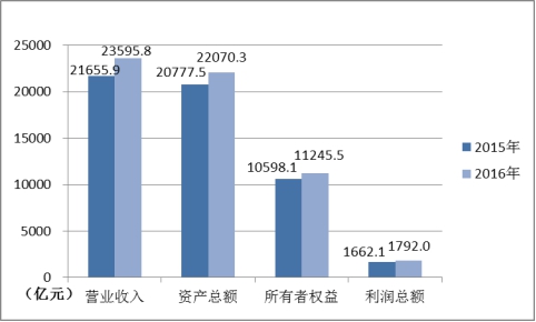 2016年,全国出版、印刷和发行服务实现营业收入23595.8亿元,较2015年增长9.0%;利润总额1792.0亿元,增长7.8%;不包括数字出版的资产总额为22070.3亿元,增长6.2%;所有者权益(净资产)为11245.5亿元,增长6.1%。