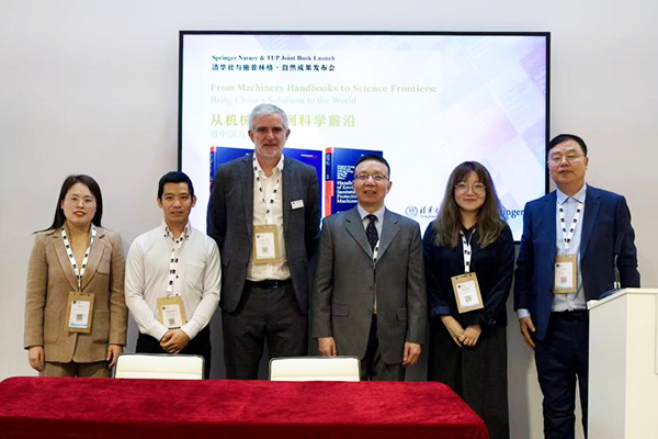 3月12日,在2026年伦敦国际书展期间,清华大学出版社与施普林格·自然集团联合举办成果发布会,正式推出“工程机械手册”丛书中最新的两部英译作品——《桩工机械、混凝土机械与砂浆机械手册》和《环卫与环保机械手册》。清华大学出版社总编辑卢先和,施普林格·自然集团科技图书全球副总裁詹姆斯·芬利、大型参考书编辑总监杨绍伟出席了本次发布会。