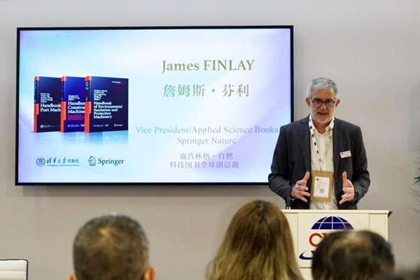 詹姆斯·芬利分享应用科学领域图书发展战略及与中国出版界的合作情况。他表示,通过与中国出版机构的深度合作,施普林格能把像“工程机械手册”这样源于中国的标准与方案,介绍给全球的专业读者。他特别向清华大学出版社团队的倾力付出与有力支持致以诚挚谢意,并表示,希望借助举办这次发布会,让手册更好地服务全球工程建设,拓展其专业影响力与社会效益。他强调,施普林格始终高度重视中国在应用科学领域的创新成果与技术突破,未来将持续深化合作,将更多中国方案,带给全球知识社群。