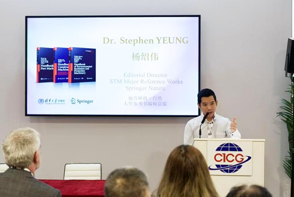 卢先和致开场辞,题为“以书为桥,让中国智慧与世界同行”。他表示,“工程机械手册”作为中国工程机械领域首部大型工具书,涵盖21卷、2000多万字,凝聚了近千位专家学者十四载的心血与智慧,构建了系统化的工程机械行业知识体系。卢先和表示,正是基于清华大学出版社与施普林格对科学传播使命的共同坚守,《港口机械》《桩工机械、混凝土机械与砂浆机械》《环卫与环保机械》等分册得以跨越语言障碍,以英文版的形式走向世界。这既是为行业进步与“一带一路”倡议贡献知识力量,也标志着中国工程机械的经验与智慧,正在全球范围内“被看见、被使用和被尊重”。