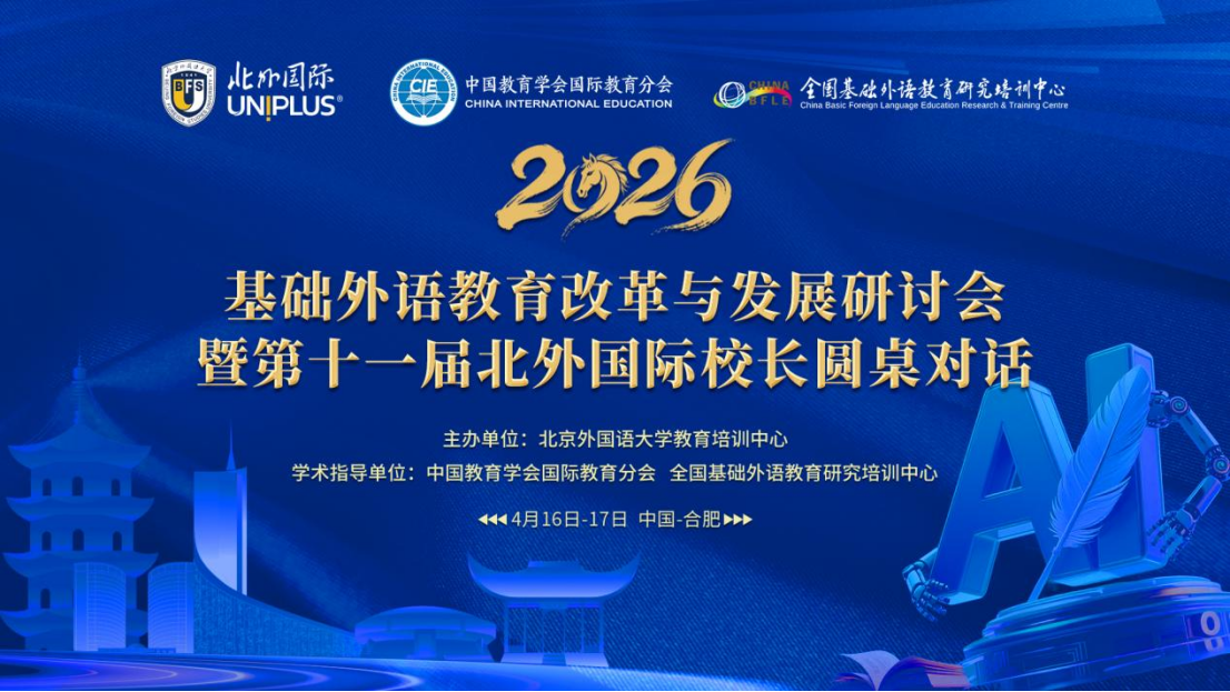 江淮四月,草木葱茏,科创高地群贤毕至,教育盛会思想潮涌。2026年4月16日,第十一届北外国际校长圆桌对话在安徽省合肥市正式启幕。本届圆桌对话以“育见未来:AI浪潮下的素养重塑与全人教育新生态”为主题,由北京外国语大学教育培训中心(以下简称“北外国际”)主办,中国教育学会国际教育分会、全国基础外语教育研究培训中心提供学术支持。