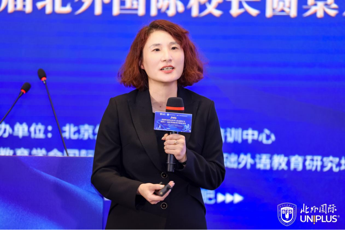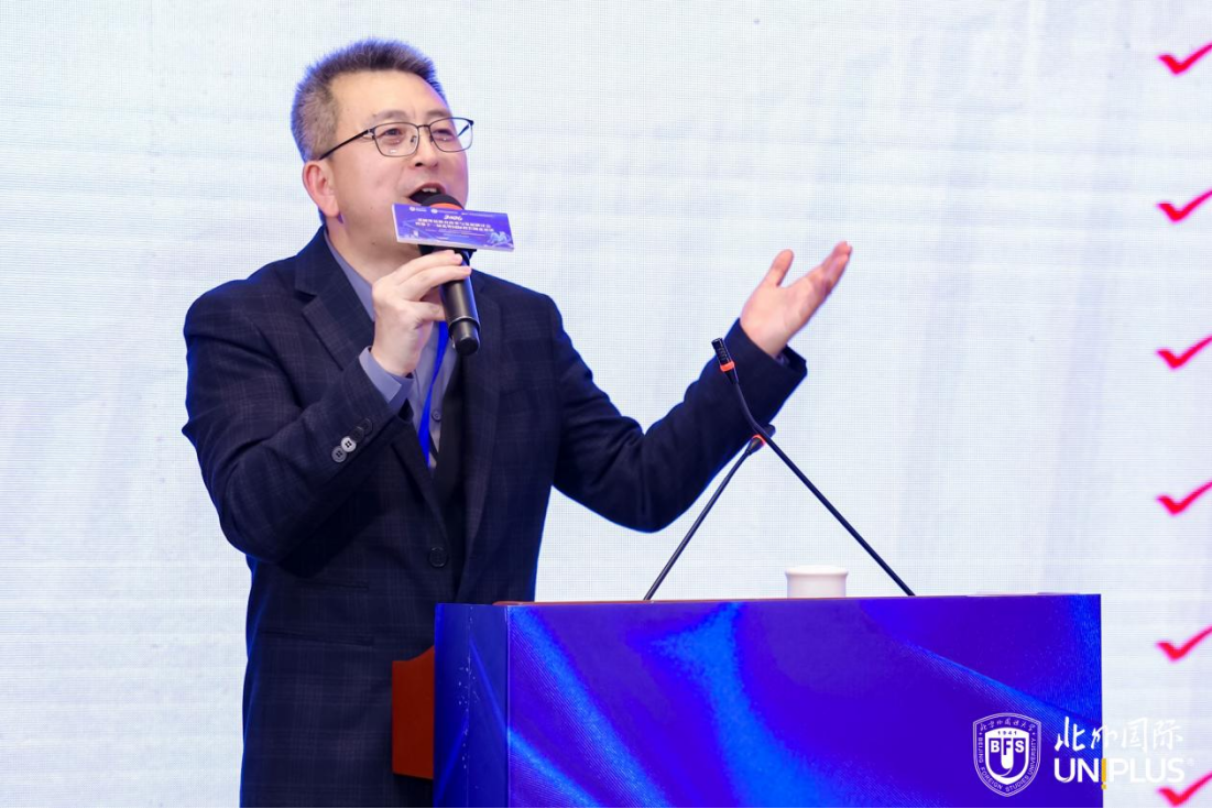 上海圣华紫竹双语学校校长葛顺勇与参会嘉宾分享了学校转型发展历程。他指出,优质双语学校的发展,既要立足本土、坚守初心,也要放眼世界、借力登高。学校立足“学术扎实、全面发展、国际视野”的办学定位,携手北外国际深化英语教学合作,通过引入专业语言教育资源与构建特色融合课程体系,在夯实学术基础与本土底蕴的同时,全力打造兼具国际视野与时代高度的教育标杆。