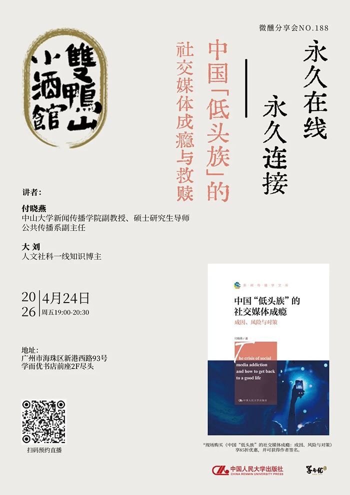 《中国“低头族”的社交媒体成瘾:成因、风险与对策》展示了中国年轻社交媒体用户深度依赖社交媒体的社会和文化根源,以及由此产生的各种风险,例如购物成瘾、自我客体化、抑郁、焦虑、低结婚率和低生育率等等。在综合考察近二十年来网络成瘾相关的大量国际研究成果的基础上,本研究基于课题组收集的第一手的研究数据建构了“中国年轻网民社交媒体成瘾发生和维持的模型”。最后,基于过往中国社会出现的大量戒除网瘾学校引发的一系列负面反响,本研究回顾和检验了近年来在国际学术界受到重视的一些新兴干预方法,如基于软件的干预对策、社区介入以及新媒体素养教育等网瘾干预方法的成效。