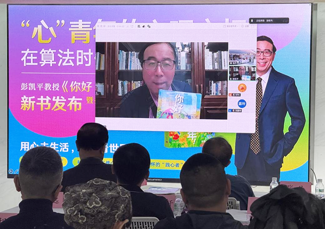彭凯平在线致辞,提出“心”青年概念,用于构建“个人成长-生活实践-认知升级-文化认同”的完整成长指引体系。他表示,如果说清华H+Lab过去十年专注“研发幸福”,那么《你好,“心”青年!》就是将幸福科技“翻译”给青年的成功实践。彭凯平提到,“心”青年这一概念,并非特指某个年龄段,而是描绘一种理想的人格状态——凭借心理韧性面对不确定性,活得心花怒放,成为AI时代人类“心理主权”的守护者。同时他还介绍了成为“心”青年的三大核心素养:文化自觉的“通心者”、科学精神的“修心者”、社会关怀的“践心者”。