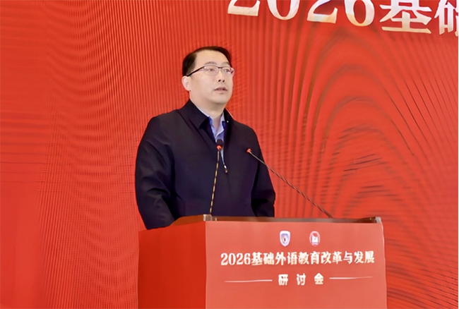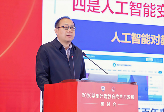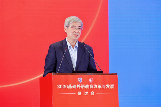 王定华作题为“服务国家战略,增进中外交流——新时代外语教育的新使命与新担当”的主旨报告。他强调,新时代外语教育要以服务国家战略、增进中外交流为核心使命与担当。第一,以服务国家战略彰显价值,外语教育是国家战略重要内容,需培养兼具家国情怀、全球视野与专业本领的国际化人才,为国家储备参与全球治理、讲好中国故事的后备力量。第二,以教育家精神铸魂教师队伍,依托教育家精神打造高素质专业化外语教师,要求教师具备政策认知、全球视野、数智能力、人文素养等核心素养。第三,以人工智能赋能教学变革,借力生成式AI推动教育向新质素养本位跃升,构建“学校—家庭—社会—智能”四域融合学习生态,善用技术优化教学并坚守教育温度。第四,以守正创新坚守育人初心,纠正“重工具轻人文、重应试轻素养”倾向,融入课程思政,实现从学科教学到学科育人的转变。第五,以促进中外交流拓展空间,培养学生全球胜任力,开展国际教育合作、援助与全球治理参与,助力教育强国建设,谱写新时代外语教育新篇章。