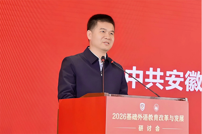 近日,由北京外国语大学、安徽省教育厅主办,中国教育学会、全国基础外语教育研究培训中心、中国外语教材研究中心、安徽省教育科学研究院提供学术支持,外语教学与研究出版社(以下简称“外研社”)、合肥市教育科学研究院承办,合肥一六八中学、合肥经开区社会发展局教育发展中心、合肥一六八玫瑰园学校东校、合肥一六八玫瑰园东校教育集团经开实验学校、合肥市明珠小学、合肥市朝霞小学协办的“2026年基础外语教育改革与发展研讨会”开幕。