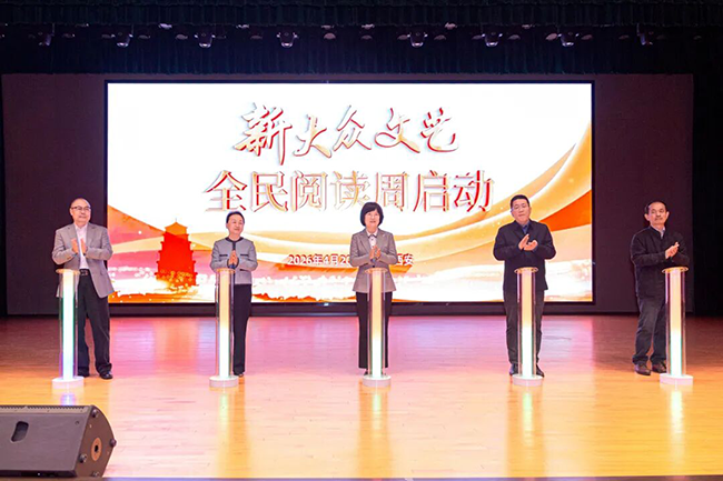 为深入贯彻落实《全民阅读促进条例》,响应中国作家协会“文学浸万家”活动号召,4月20日,由中国作家协会社会联络部指导,陕西省作家协会主办,陕西省作家协会社联部、陕西师范大学出版总社、《延河》杂志社联合承办的“新大众文艺全民阅读周”启动仪式在陕西师范大学举行。“新大众文艺出版研究中心”同时揭牌。