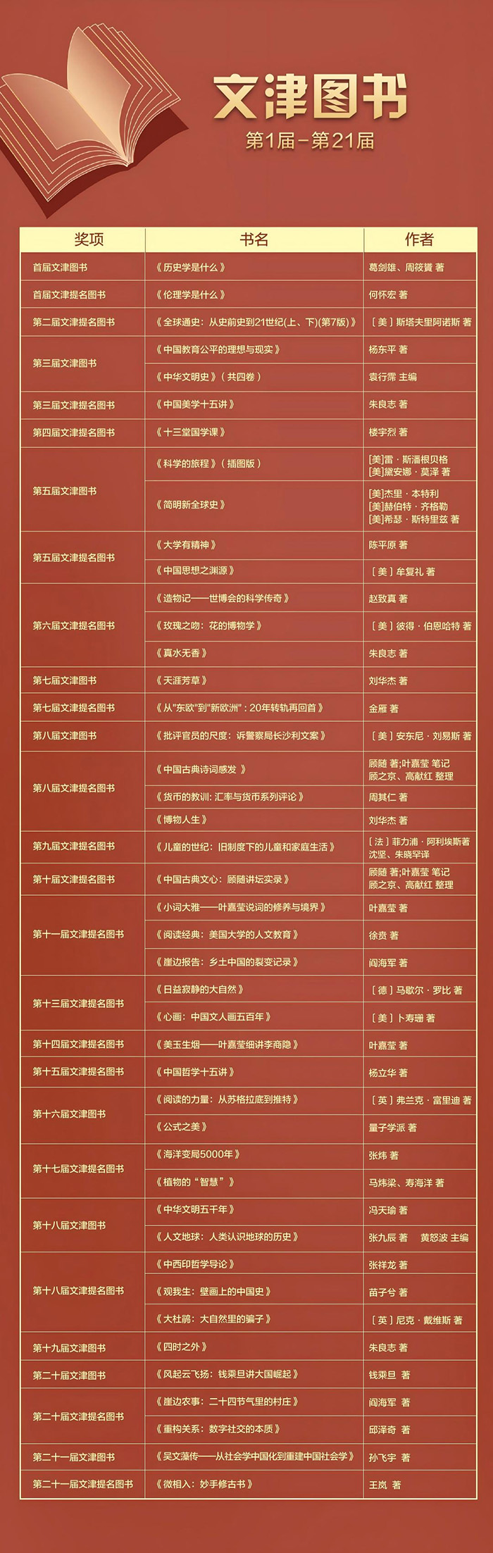 文津图书评选推广活动由国家图书馆主办并联合全国图书馆界共同参与,是一项具有高度公信力和广泛影响力的公益性图书奖项。自2004年创办以来,该评选已成功举办二十一届,始终致力于引导社会力量共同推动全民阅读。本届评选竞争激烈,从全国2700余种参评图书中,最终评选出文津图书20种、文津提名图书49种。此次获奖,再次彰显了北京大学出版社在学术出版与文化普及领域的持续深耕。截至目前,北京大学出版社累计已有14种图书获评文津图书,30种图书获评文津提名图书。