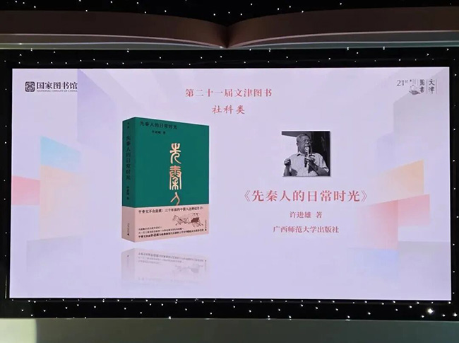 2026年4月23日,由国家图书馆主办的第二十一届文津图书评选结果正式揭晓。广西师范大学出版社推出的历史人文佳作《先秦人的日常时光》被评为第二十一届文津图书(社科类)。《机器时代:技术如何改变我们的工作和生活》《故事正义:文学影视中的法律文化》获得第二十一届文津图书社科类提名图书,《大脚怪,出去玩》《大金瓜》获得第二十一届文津图书少儿类提名图书。