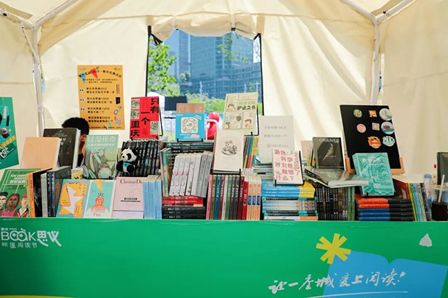 全民阅读活动周,重庆市以“阅读创造美好”为主线,精心策划推出了一系列可观、可游、可互动、可消费的阅读体验活动。位于两江新区钻石广场的主营地设置了4大主题帐篷、51个阅读文化市集。其中由重庆大学出版社深度参与的“字造山河”主题帐篷成为当天人气最旺的板块之一,连续推出4场作者分享荐书活动,从上午持续至晚间,场场座无虚席。