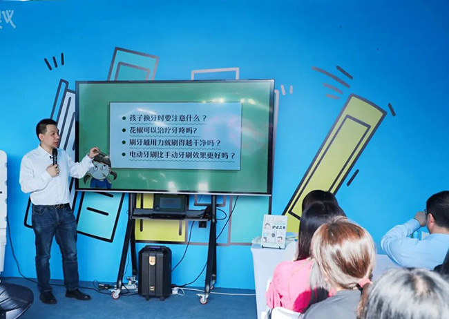 重庆大学医学院副院长、科普作家罗阳教授以“看见世界的光,绽放自信的笑”为主题,带来了一场兼具专业深度与亲子温度的科普讲座。作为重庆大学出版社科普读物《给孩子的爱眼之书》与《给孩子的护齿之书》的作者,罗阳长期致力于医学科普与健康传播工作。他深知,许多儿童健康问题的根源不在于缺乏医疗资源,而在于早期健康意识的缺失。正是基于这一洞察,他选择用孩子喜欢的方式、家长听得懂的语言,将专业的眼科与口腔健康知识转化为温暖可感的图文故事。活动现场,他以亲切幽默的语言,深入浅出地讲解了近视防控与口腔健康的核心知识。这场兼具专业性与亲子温度的科普课上,众多家长带着孩子慕名而来,在春日的帐篷书海中,共同开启一场关于眼睛与牙齿的健康启蒙之旅。