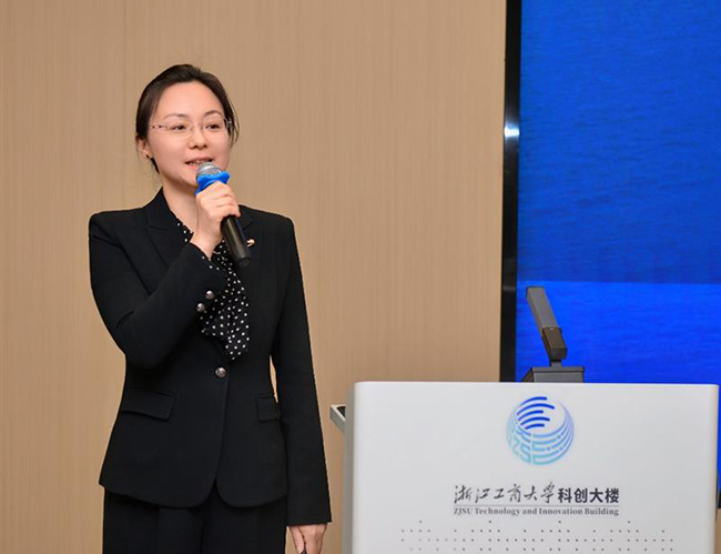 浙江省交通集团财务公司党委书记、董事长李媛介绍浙江交通集团财务公司数智化转型实践,以“数字赋能财资、财资引领生态”为核心,构建“1341”司库体系,实现降本增效、防控风险、提质赋能,推动高校与企业协同育人。