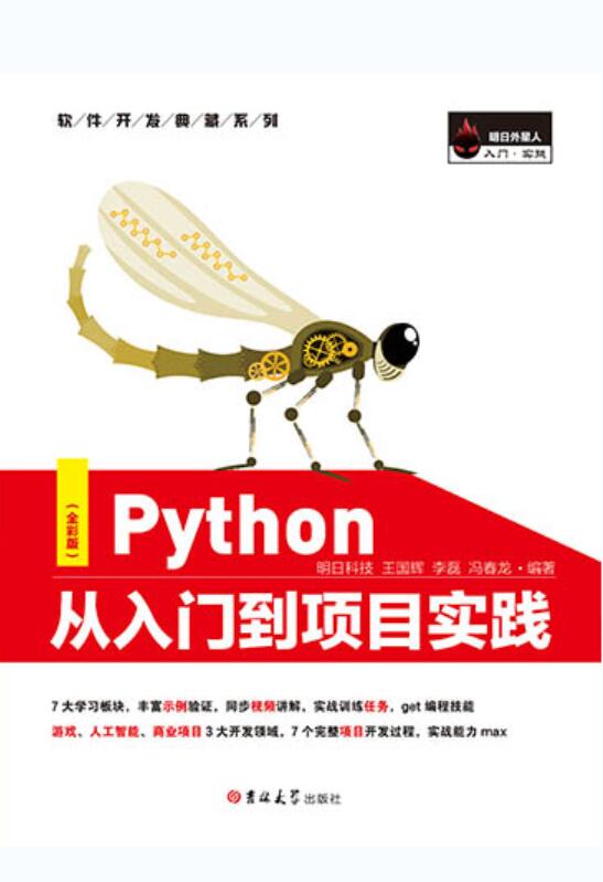 《Python 从入门到项目实践》 一书从入门学习者的角度出发,通过简洁有趣的语言、丰富多彩的实例、挑战大脑的任务、贴近开发实战的项目,循序渐进地让读者在实践中学习,在实践中提升实际开发能力。全书共分7 篇:基础篇、进阶篇、高级篇、框架篇、游戏开发篇、人工智能开发篇和商业项目篇,内容包括:踏上Python 之旅、熟悉PyCharm 开发环境、Python 输入与输出、变量与基本数据类型、运算符、列表和元组、字符串与正则表达式、流程控制、循环结构语句、字典与集合、类和对象、模块、文件与IO、使用Python 操作数据库、进程和线程、网络编程、异常处理与程序调试、常用的GUI 框架、pygame 游戏框架、网络爬虫框架、Flask Web 框架的使用、Django Web 框架的使用、谷歌小恐龙游戏、飞机大战游戏、微信跳一跳辅助工具、汽车之家图片抓取工具、AI 图像识别工具、e 起去旅行网站、看店宝(京东版)。本书不仅会带您畅游于Python 开发的精彩世界,启迪编程思维,更能让您领略Python 迷人的开发魅力!