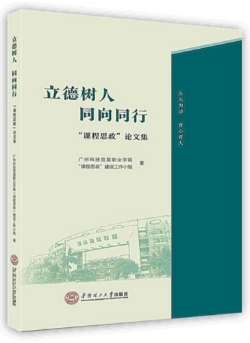 “课程思政”以其构建全员、全程、全课程育人格局的形式将各类课程与思想政治理论课同向同行、形成协同效应的一种综合教育理念,成为推动高校思政工作和思政课改革创新、落实立德树人教育根本任务的重要举措在全国高校得到广泛推进。广州科技贸易职业学院经过组织申报、校外专家评审等环节,确立了学院第一批“课程思政”教育教学改革项目37项。为了更好地推动“课程思政”教育教学改革,呈现广大教师践行“课程思政”的成果、体会以及对课程思政建设的进一步思考,更好地丰富师生对课程思政的理解,更加明确课程思政的建设责任和育人目标,特推出‘课程思政’建设研究论文集.