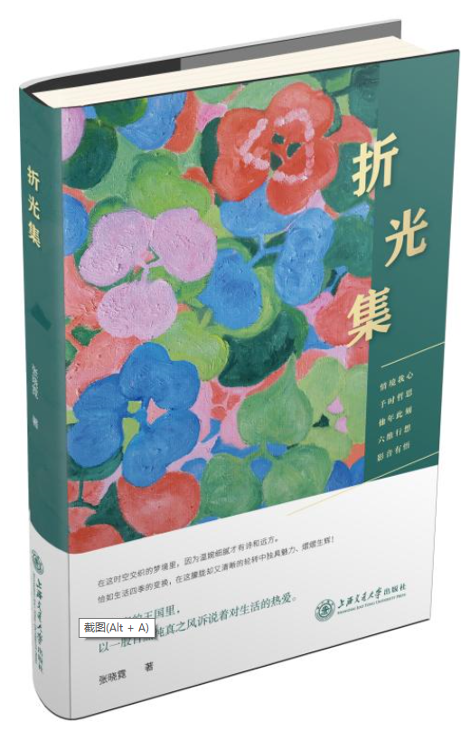 《折光集》主要是基建处张晓霓老师最近几年创作的一些散文、诗歌散文及散文观影感等。作品主要是晓霓老师的一些人生感悟,也包含对校内一些场景的感想,还有晓霓老师结合自己多年来在文学、绘画、摄影、观影等方面积累的个人体会。依据文稿的内容全书分为情境我心、予时哲思、他年此刻、六维行想、观影有感等五个部分。内容涵盖个人在不同时期创作的小清晰风格的散文,文笔细腻,予有哲思和感悟。