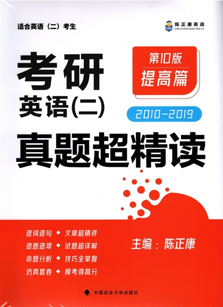 1.本书是陈正康老师编写的“考研英语真题超精读”系列产品之一,适合参加考研英语(一)的考生在备考的提高阶段使用。 2.全书甄选2010-2020年考研英语(一)真题;试卷集合成册、精读精解按年份独立装订,答案速查够方便、携带使用够简便。 3.逐词、逐句、逐段、逐篇超精解读,核心必考词讲解、长难句精析精译、英汉对照互译一应俱全;“正确项精解”“干扰项分析”“技巧点拨”同步到位,还原命题思路,破解命题套路;“结构分析”“翻译技巧”攻克长难句翻译,授之以渔;“审题构思”传授写作前的布局谋篇之法,“写作储备”提供写作素材,增加写作储备。 4.每个年份的精读精解按每篇文章所在页码配备目录,便于快速准确定位文章;必考词汇、常考搭配、超纲词汇全部配有标注,便于迅速定位重难点词汇。