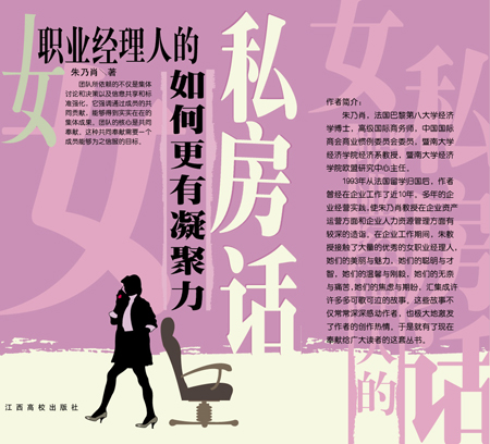 作者简介: 朱乃肖, 法国巴黎第八大学经济学博士,高级国际商务师,中国国际商会商业惯例委员会委员,暨南大学经济学院经济系教授,暨南大学经济学院欧盟研究中心主任。 1993年从法国留学归国后,作者曾以管理人员的身份在中国纺织品进出口总公司等多家大型企业工作了近10年,也曾为多家外资企业担任管理咨询顾问。多年的企业经营实践,不仅使朱乃肖教授在企业资产运营和企业人力资源管理方面有较深的造诣,同时也使她接触了大量优秀的女职业经理人,她们的美丽与魅力,她们的聪明与才智,她们的温馨与刚毅,她们的无奈与痛苦,她们的焦虑与期盼,不仅常常深深感动作者,也极大地激发了作者的创作热情,于是就有了现在奉献给广大读者的这套丛书。
