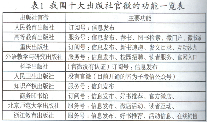 一、出版社微信公众号群建设特点