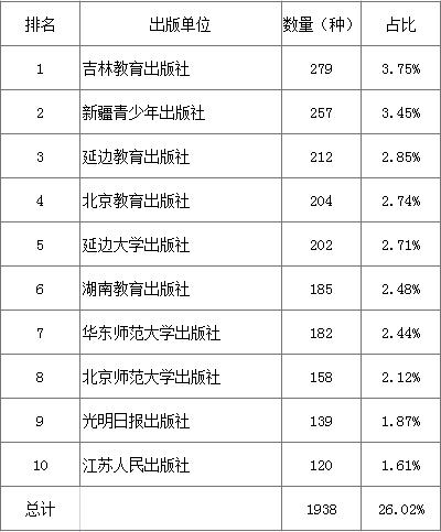 图书出版总量略有上涨,吉林出版集团股份有限公司数量最多