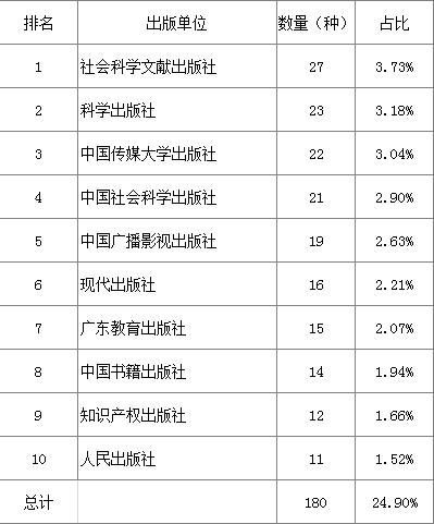 8个细分种类图书出版单位排名前十见表3-表10。