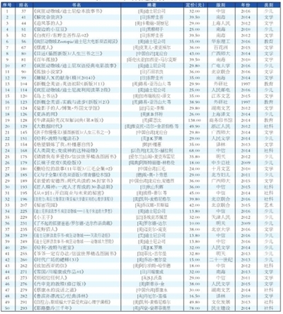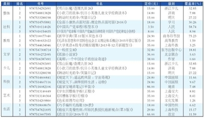 引进版作品16种登榜:日系推理《解忧杂货店》和《白夜行/东野圭吾作品02》分列第3、7位,3月新书《孤独小说家》位列第18;卡勒德·胡赛尼《追风筝的人》位列第5;克莱儿·麦克福尔的《摆渡人》和加西亚·马尔克斯的《百年孤独》入围TOP20;龙应台作品分列第16、25、34位。