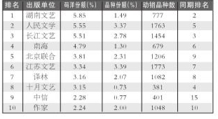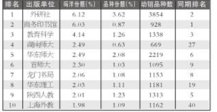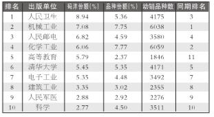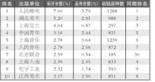 细分市场出版社排名 出版社零售码洋排行TOP10