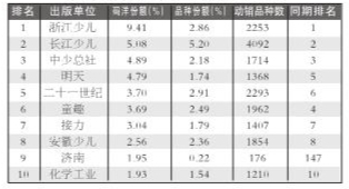 出版社码洋份额环比增减变化分析 浙江少儿社环比增幅居首
