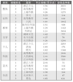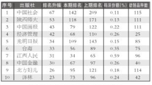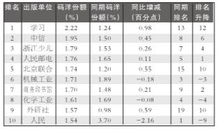 出版社排名环比升幅 整体市场出版社排名环比升幅TOP10