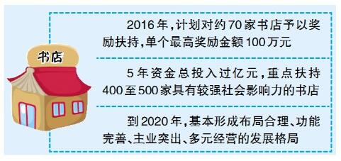 扶持资金使用方式以奖励为主,必要时可采用购买服务或项目补贴等形式。2016年,计划对约70家实体书店予以奖励扶持,单个最高奖励金额为100万元。“十三五”期间,每年将制定年度扶持申报指南,对实体书店的扶持重点和方向进行微调。预计5年间重点扶持发展400至500家具有较强社会影响力的实体书店,资金总投入过亿元。