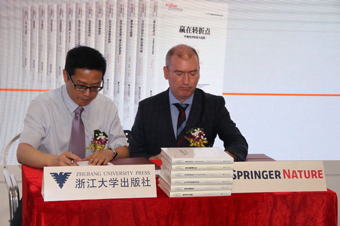 浙江大学出版社社长鲁东明教授和施普林格•自然出版集团亚太区执行主编威廉•阿克尔先生签署合作出版框架协议