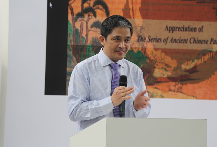 祁德树副主任在讲话中指出,作为一项规模浩大、纵贯历史、横跨中外的国家级重大文化工程。《中国历代绘画大系》整理的范围,是战国至清代所有重要的绘画作品,较之以文字呈现的文化遗产的整理,这项目的要求更高,难度也更大。大系每一步成绩的取得,都离不开国家出版基金规划管理办公室的长期大力支持和习总书记的亲切关怀。浙江大学出版社总编辑袁亚春介绍了《中国历代绘画大系》的整理情况及进展,从选纸到印刷的每一个流程,浙江大学出版社都一丝不苟。“只有尽可能地把绘画的精神风貌还原出来,才能让读者身临其境,进入古代绘画大师的心灵世界”。