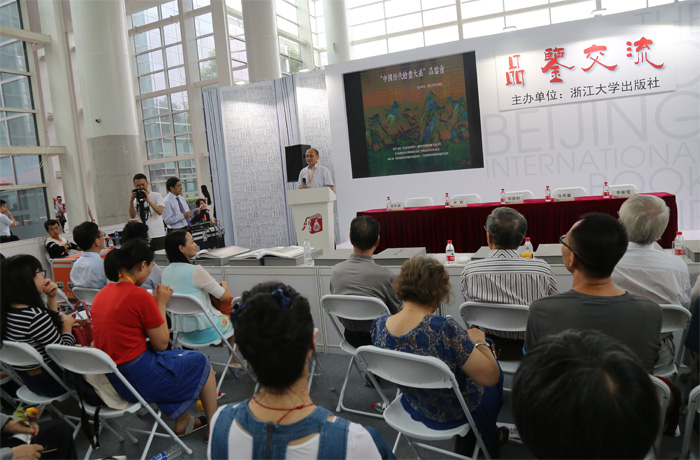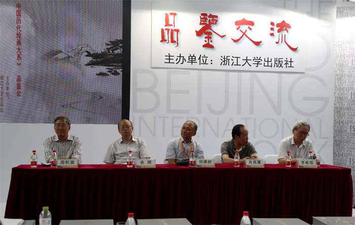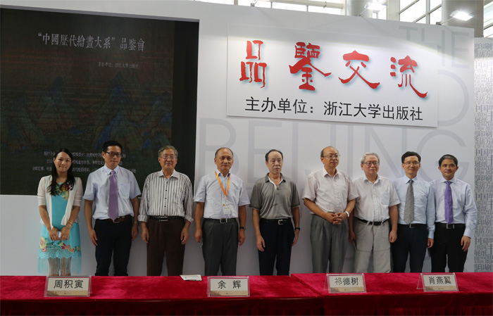 本网讯 8月24日下午,第二十三届北京国际图书博览会开幕当天,浙江大学出版社“中国历代绘画大系”(以下简称“大系”)品鉴会在中国国际展览中心隆重举行。活动特别邀请到了博物馆专家:国家文物鉴定委员会委员、故宫博物院原副院长肖燕翼,故宫博物院研究院副院长余辉,上海博物馆书画研究部原副主任李维琨;高校学者代表:南京艺术学院教授周积寅莅临参加;国家出版基金办副主任祁德树专程出席并讲话。