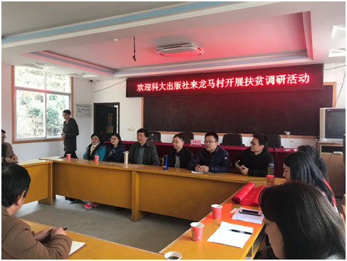 龙马村地处偏远山村,自然条件恶劣,交通闭塞,基础设施落后,贫困户大多因病、因残或因子女就学而致贫,扶贫难度较大。2014年,响应国家扶贫攻坚号召,在安徽省的统一部署下,我校与安徽省金寨县燕子河镇龙马村结为对口帮扶单位。中国科学技术大学出版社积极配合学校工作,派出骨干力量驻村扶贫,并积极参与学校开展的各项扶贫工作。