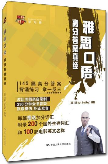 本书是bobby老师多年教学经验的总结,包含三大版块,第一部分是雅思考试介绍和雅思口语考试的高分秘籍,第二部分是雅思口语考试part1 和part2 的高分答案汇总,第三部分是part3 的阐发。本书由话题整理,高分机经和高分答案词共同组成,是一本含金量很高的备考宝典。