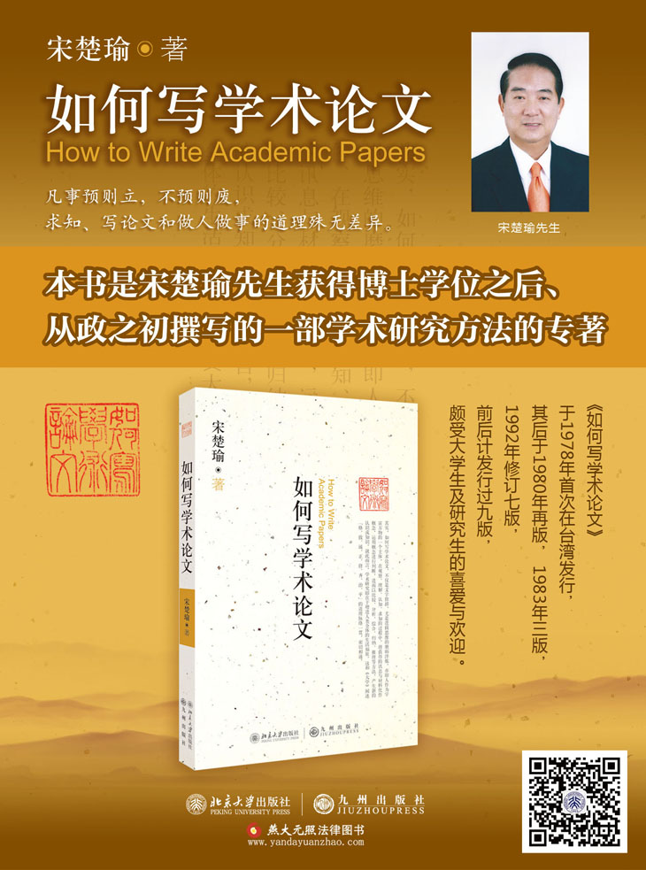 宋楚瑜先生在《如何写学术论文》的中文简体字版序中说道:“之所以会出版《如何写学术论文》这本书,是有一些缘由的,说来与我从事学术研究,以及曾经投入图书馆工作有关。……在每阶段的求知过程中,我总是时时问自己:‘我的求知目的是甚么?’尤其愈往学术顶端时,这个问题愈是迫切。不错,当初想要攻读图书馆学位,的确与生活、生计、养家活口有关。但是这门学问对我大有启发,它不仅帮助我完成学位,也借着图书馆学科学方法,精炼了我未来求知之钥,与处理事务的逻辑思路。