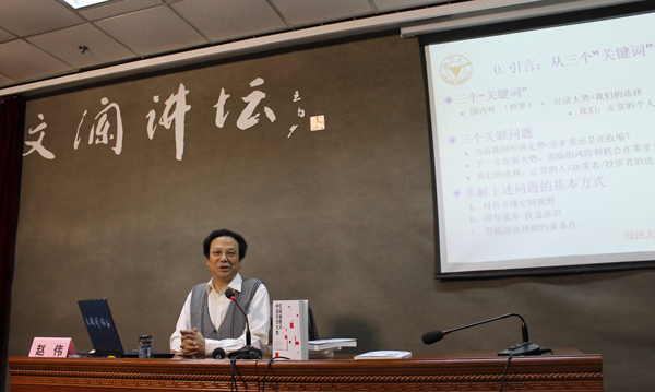 4月26日,浙江大学经济学教授、《空间视野看中国经济大势》作者赵伟,应邀来到浙江省图书馆文澜演讲厅,为广大读者作了题为《内外经济大势与我们的选择——赵伟教授和您聊经济热点问题》的讲座。