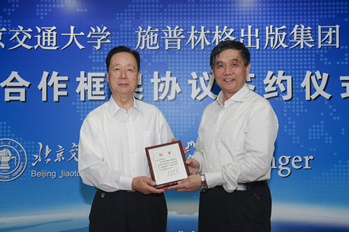北京交通大学校长宁滨表示,“学校始终把加强科技创新作为发展的战略重点,不断提升社会服务能力。此次北京交通大学出版社与施普林格出版集团的合作,将是学校学科建设国际化和学术成果走向世界又一个新的契机。”