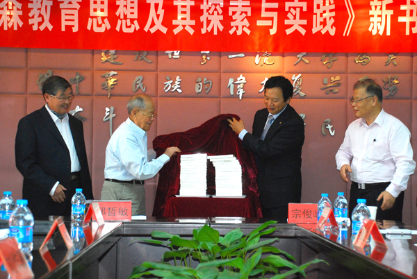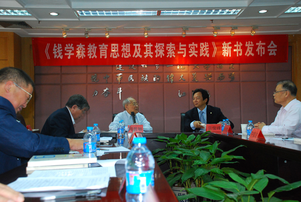 清华大学出版社社长宗俊峰在致辞中提到:钱学森教育思想的核心是,在21世纪现代科学技术体系下,培养能发明创造的创新型人才。创新是钱学森教育思想的灵魂,也是“钱学森之问”的焦点,也是清华大学出版社不懈的追求目标。清华大学出版社历来紧跟教育教学改革和科技进步的步伐,致力于中国的教育改革和现代人才的培养,本书主编所总结的钱学森教育思想的“五六九理念”与我社的建设目标不谋而合。”钱学森唯一在世博士生、九十岁高龄的郑老说:“我的老师钱学森1955年回到祖国,他想让中国的科学技术用到工业、农业等方方面面,所以理解钱学森教育思想不仅要从教育,更要从整体去学习。新的一代开始了,预祝未来会有更多的研究成果出现。”另一位钱老的学生、导弹研究专家裴景峰教授也怀着敬仰之心谈到了刚回国就献身到科研和教育事业里的钱老。他说:“钱老是个谦虚的人,没有架子,每次上课 都会提前到教室,亲自擦黑板。那时上课没有教材,钱老就是用他脑子里知识讲给大家,胸有成竹。”国家教育咨询委员会委员谈松华教授回顾了“钱学森之问”提出和发表的情况。接着,《钱学森教育思想探索》主编赵泽宗做了题为《钱学森教育思想的核心是培养创新人才》的主题发言,简述了钱学森教育思想的“五六九理念”。五是指人才培养的“五个结合”;六是指教育改革的“六个思路”;九是指对“教育规划纲要”实施的“九点启示”。赵泽宗还介绍了弘扬钱学森教育思想的创新实践活动——创建以航天为主题的“学森智慧小屋”,引导学生学习钱学森爱国思想,科学精神,亲自动手组装小火箭,发射小火箭,体验模拟航天工程师的乐趣,激发学生创新意识。 随后,与会专家学者围绕“钱学森教育思想探索、创新人才培养”主题进行了深入研讨。大家从自己的研究领域,从国家和党的层面,讲怎样落实“十八大”精神,落实习近平总书记在两院院士大会上的讲话精神“创新、创新再创新”和一系列深化改革的建议。 今年10月31日是钱老逝世5周年,12月11日是钱老103周年诞辰,4月22日“口述钱学森工程”启动。钱学森秘书顾吉环说:“钱学森在上个世纪九十年代初提出了教育思想,这是基于钱老对自身成才之道的思考,并致力于创新人才培养实践的结果。‘钱学森大成智慧教育研究与实验’课题是对当前教育改革的有益探索。赵泽宗教授带领课题组做的是对国家有重大贡献的事。”通过“钱学森教育思想”总课题组十年磨一剑的努力对“钱学森大成智慧教育思想”的深入探索及总结,为培养高素质创新型人才,提供了重要的启示。特别感谢钱学森秘书顾吉环同志赠送《钱学森文集》、《钱学森书信集》。