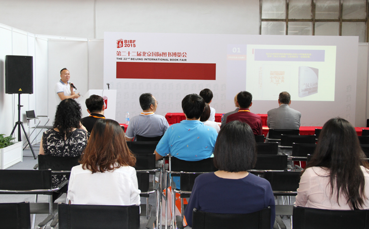 2015年8月27日15点,第二十二届北京国际图书博览会上,复旦大学出版社有限公司在第二会议室(西二馆)举办了《中华汉英大词典(上)》新书版权推介会,出版社董事长王德耀先生,副总编张永彬先生分别致辞欢迎与会出版商与媒体朋友的到来。随后,外语分社社长黄昌朝先生从词典的主编 、收词量、收词特色等对词典进行了简要介绍,并以具体例子生动展现收词特色。英国、美国、荷兰等国多家出版商,《中华读书报》、《中国出版传媒商报》、中国高校教材图书网等媒体出席了推介会。最后,出版社和与会出版商就一些细节问题进一步进行洽谈交流。