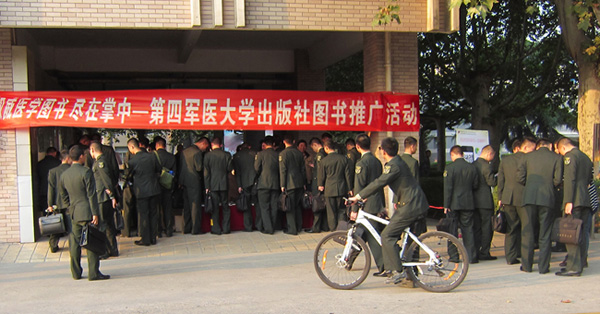 10月15日下午,第四军医大学出版社以“权威医学图书,尽在掌中”为主题的“移动微书城”推广活动在学员广场举行。