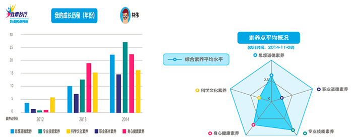 在完成学生素养能力培养的同时,真实记录了学生的素养能力成长轨迹,形成全维度、全时空、全领域、全周期的素养能力数字档案,实现了学生职业素质测评方式从隐性、定性评价向显性定量测评的转变。