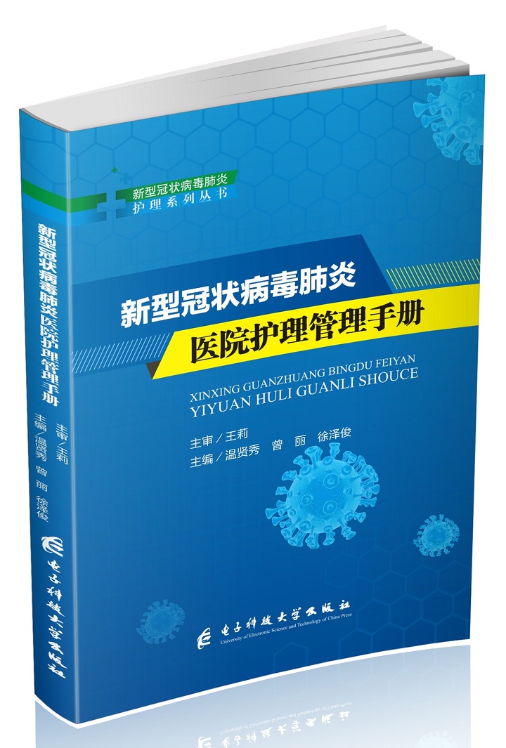 大疫当前,中国医护撑起了中国脊梁。而专业的防控知识,是打赢这场疫情防控战的重要保障。为增加大众及有关专业人员对新冠肺炎相关知识的认识和理解,电子科技大学出版社与四川省医学科学院•四川省人民医院一起,组织相关专家及专业团队编写了新冠肺炎护理系列丛书 四本:《新型冠状病毒肺炎医院护理管理手册》《新型冠状病毒肺炎护理人员培训手册》《新型冠状病毒肺炎护理常规》《新型冠状病毒肺炎疫情期间居家护理实用手册》。