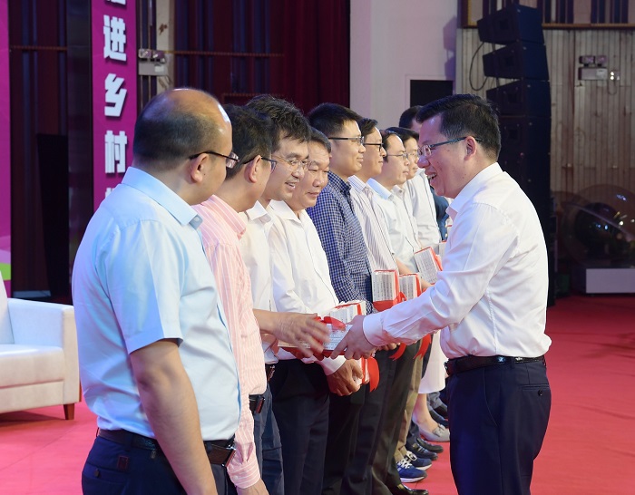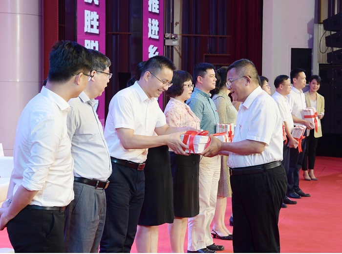 邓军书记为部分单位负责人赠送书籍(李显杨 摄)
