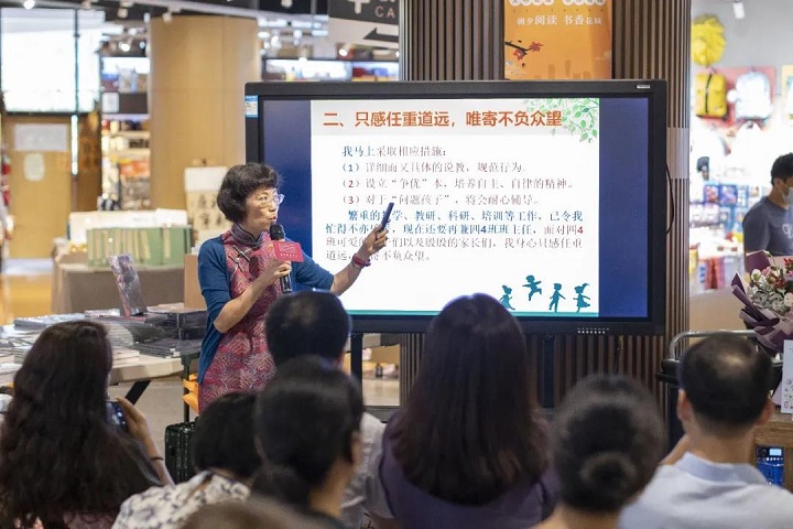 紧接着,学生家长代表与大家分享交流:“郑老师曾告诉我们,每个孩子都有不同的特点,我们的目标不是争第一,而是找唯一,所以她不以成绩高低作为评判标准,尊重每位学生的个性发展。我想,能遇到这么一位认真负责的好老师,我们是幸运的,而《孩子王手记——让孩子不断自我超越》这本书则把这份幸运带给了更多的人。”