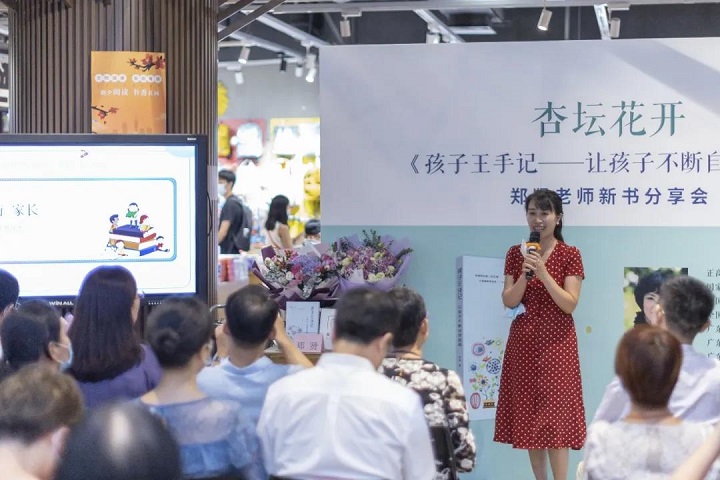 2020年8月16日下午,“杏坛花开”《孩子王手记——让孩子不断自我超越》新书分享会在广州购书活动中心三楼活动区举行。
