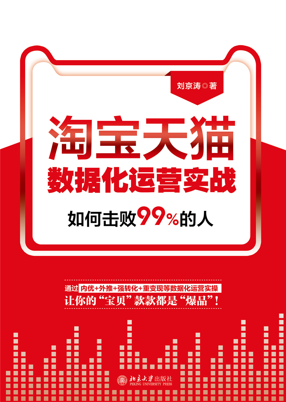 书名: 淘宝天猫数据化运营实战 ISBN: 978-7-301-31564-4 作者: 刘京涛 相关图书 印次: 1-1 开本: 16开 定价: ¥58.00 出版社: 北京大学出版社 页数: 264页 出版日期: 2020-09-30 内容简介: 本书从电商目前的发展状况展开,分析了每个电商平台运营的特点,着重讲解了行业选品需要遵循的要点、宝贝卖点挖掘的方法、宝贝价格定义的分类、黑马词挖掘的思路与宝贝标题撰写的技巧、直通车推广技巧的汇总、钻展与DMP结合推广做到精准营销、优质淘宝客寻找的方法与合作的模式、各个平台活动的报名技巧与案例解析、新媒体与电商结合的案例分析等,希望对目前从事电商运营工作的人员有所帮助。 本书特别适合意欲或正在从事电商类工作的人员,电子商务专业的毕业生,同时也适合电商创业者,尤其适合那些在运营中遇到瓶颈的商家使用。本书还适合作为大学生实战型电商教材和培训机构培养就业型电商人才的教材。 作者简介: 刘京涛,又名京涛老师,自2005年研究网站营销和SEO以来,成功服务卡耐基、北大青鸟、达内科技、金士顿天猫旗舰店,德宝城京东旗舰店等多家企业营销、推广、培训、企培。2012年创建了京涛培训学校,培训学员超过十万人。 来源:北京大学出版社