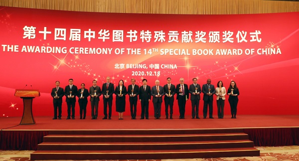 12月18日,第十四届“中华图书特殊贡献奖”颁奖仪式于北京钓鱼台国宾馆举行,隆重表彰为推动中国出版走出去、促进中外文明交流互鉴作出突出贡献的杰出代表。来自15个国家的15位作家、翻译家、出版家获此殊荣,南京大学出版社推荐的美国汉学家、著名翻译家,美国威斯康星大学麦迪逊分校教授倪豪士(William H. Nienhauser, Jr. )位列其中。根据我国新冠肺炎疫情防控规定,从获奖人生命健康安全出发,本届颁奖仪式采取线下颁奖、网上录播方式举行。中宣部常务副部长王晓晖出席颁奖仪式并颁奖,中宣部副部长张建春主持颁奖仪式。南京大学党委副书记薛海林赴京代表倪豪士教授领奖。 早在20世纪80年代,倪豪士教授就曾到南京大学访问,是最早访问中国的美国汉学家之一。倪豪士教授于2016年至2019年在南京大学文学院举办《史记》英译工作坊,吸引了来自国内外知名高校本科生、硕博士研究生、青年教师百余人参加;2019年5月被聘为南京大学文学院特聘教授。2019年5月,《史记》英译本8册由南京大学出版社与美国印第安纳大学出版社联合出版,剩下的部分也将有计划地出版,力求呈现出一个内容完整、体例统一、忠实原文、学术性强的《史记》英译本。