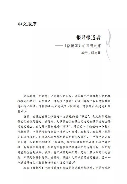 三、收录作者盖伊·塔克曼中文版序言《报导报道者:〈做新闻〉的田野故事》
